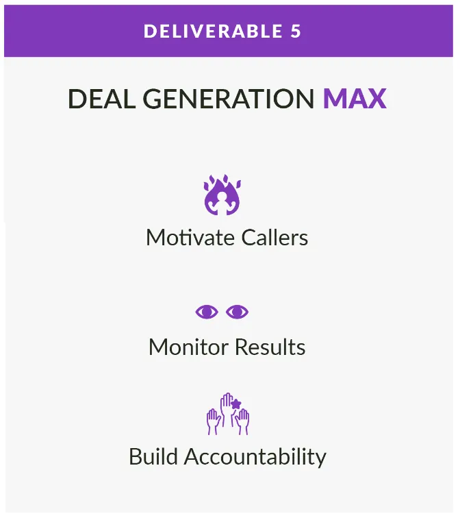 The core deliverable for this step is done-for-you management of your deal generating team.